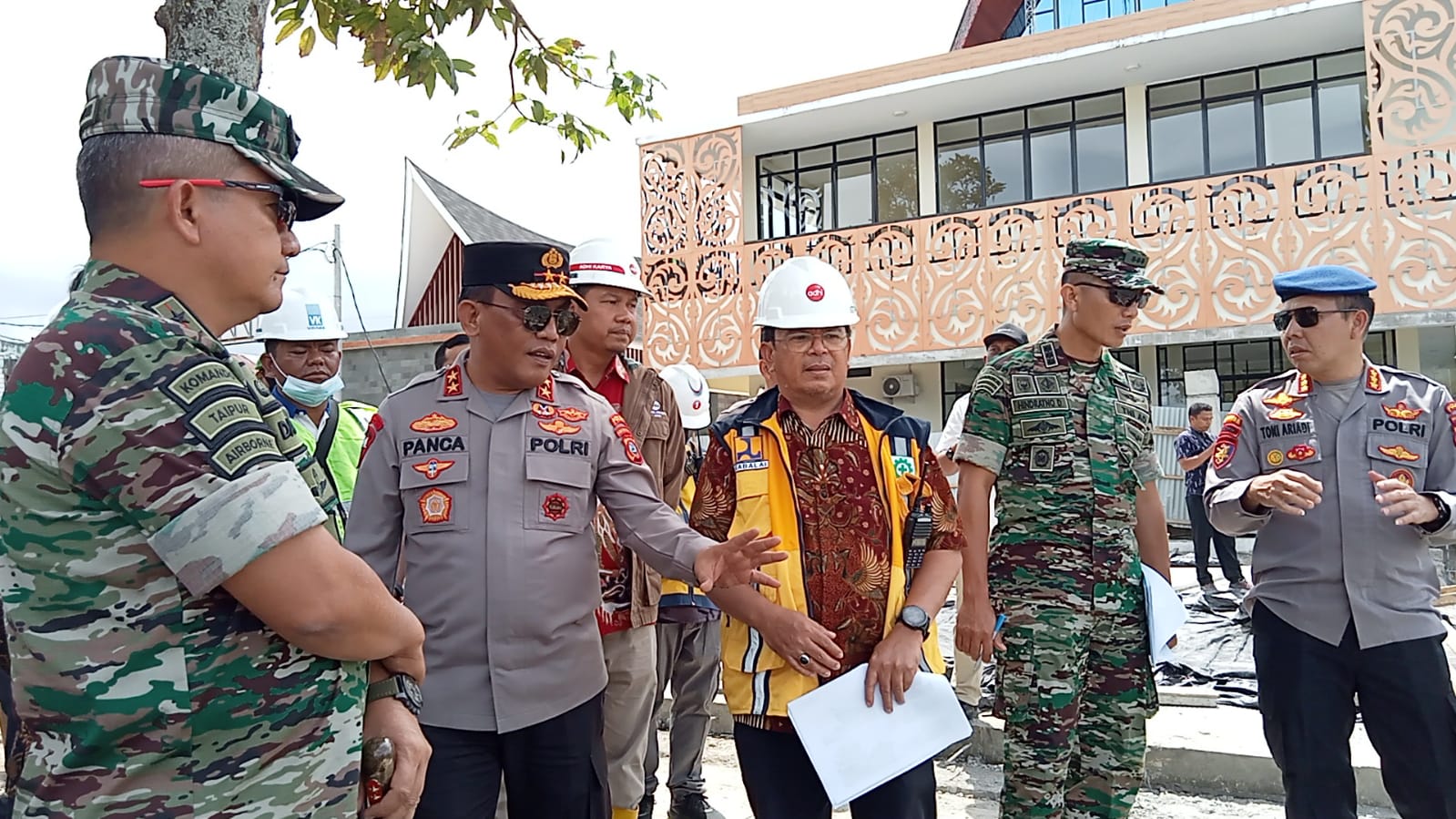 TOBA (Waspada) : Guna mensukseskan Perhelatan Event Internasional F1 Power Boat (F1H2O) International Champioship di Danau Toba Balige, Kab Toba, Kepala Kepolisian Daerah Sumatera Utara (Kapoldasu) Irjen Pol Drs RZ Panca Putra S, M.Si. bersama Panglima Daerah Militer I/Bukit Barisan (Pangdam I/BB) Mayjen TNI Achmad Daniel Chardin dan KABINDA Provinsi Sumatera Utara Brigjen TNI Asep Jauhari meninjau Pembangunan Venue F1H2O di Lapangan Sisingamangaraja Balige Kabupaten Toba, Jumat (20/01).