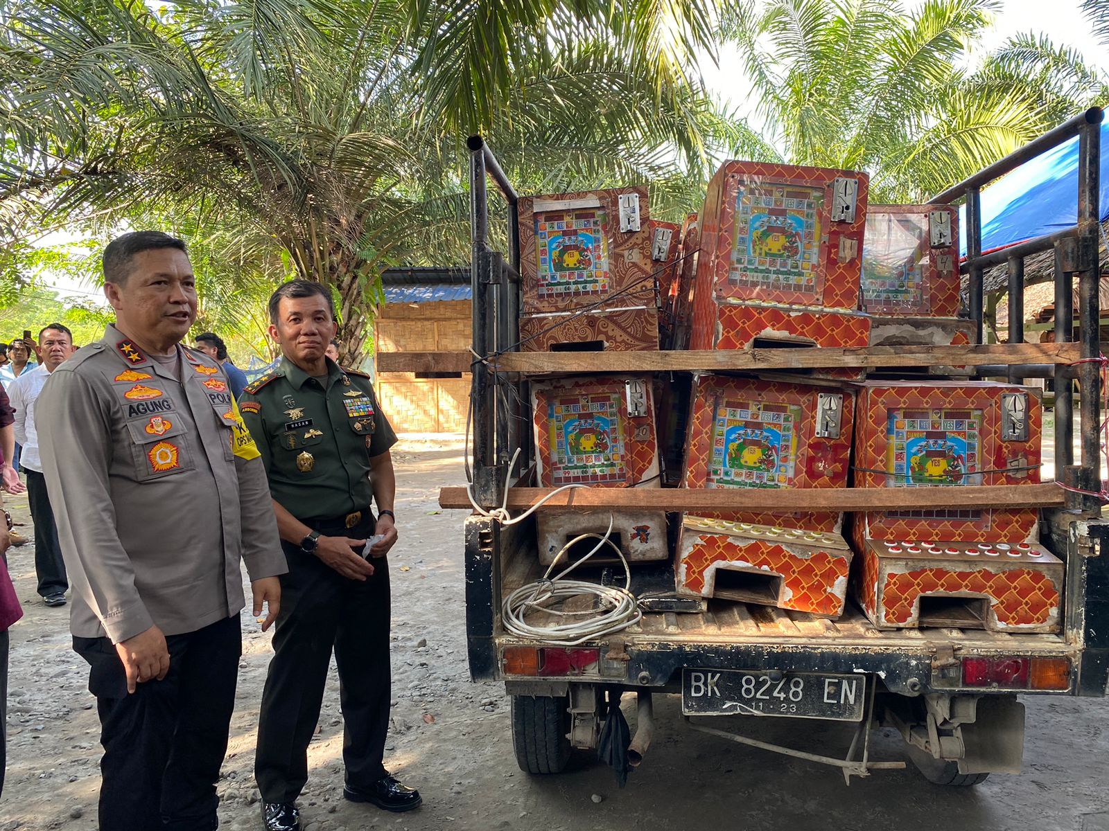 Selain itu, petugas juga mengamankan barang bukti jackpot lebih dari 20 unit. Barang bukti perjudian ini diangkut petugas menggunakan mobil pick up.