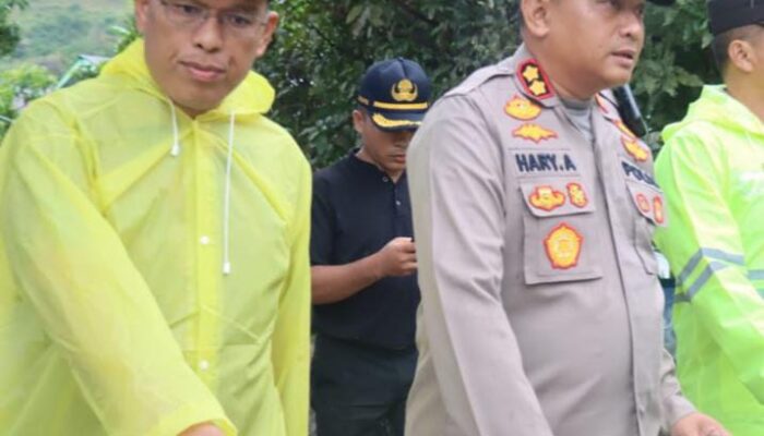 BUPATI Humbahas, Dosmar Banjarnahor dan Kapolres Humbahas, AKBP Hary Ardianto saat meninjau lokasi longsor Waspada/Ist