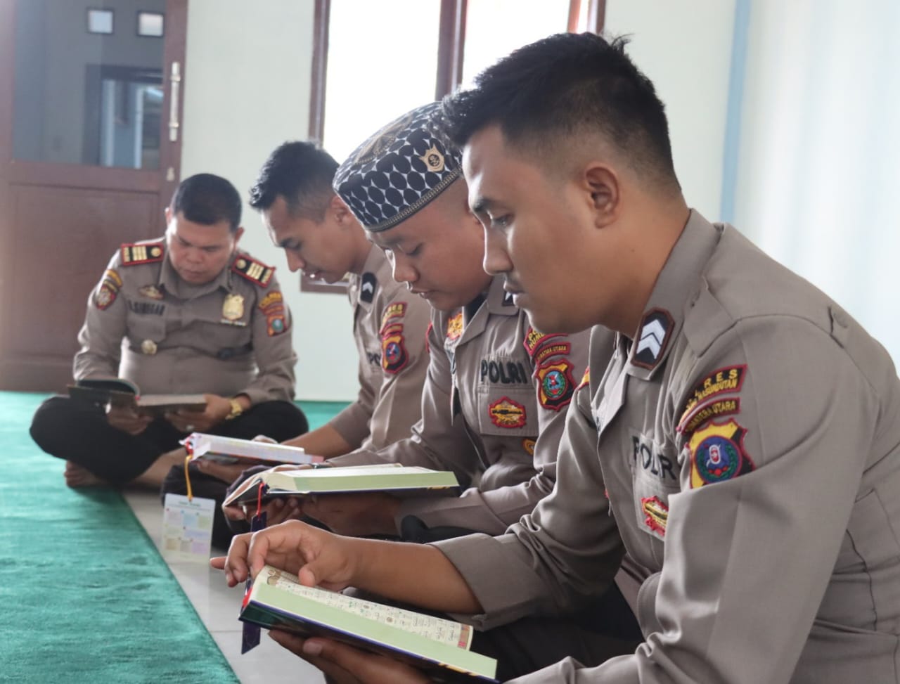 DOLOKSANGGUL (Waspada): Dalam Bulan Suci Ramadan 1445 H, Kapolres Humbang Hasundutan (Humbahas), AKBP Hary Ardianto, SH., SIK., MH budayakan gemar membaca ayat Suci Alquran satu juz satu hari (One Day One Juz) di Masjid Al-Muhajirin Polres Humbahas.
