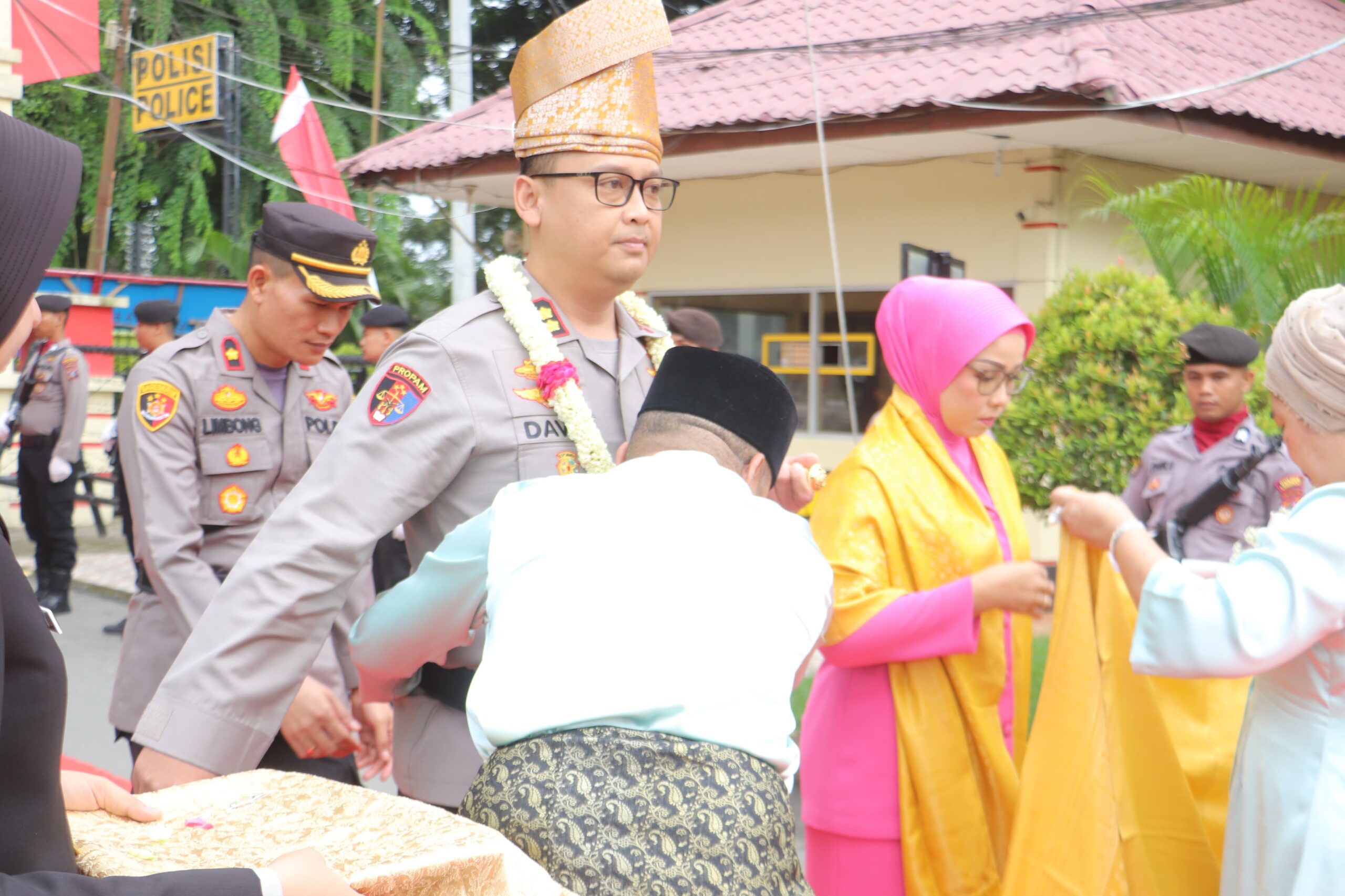 Kedatangannya disertai oleh istri mendapat sambutan hangat dari seluruh anggota Polres Langkat.