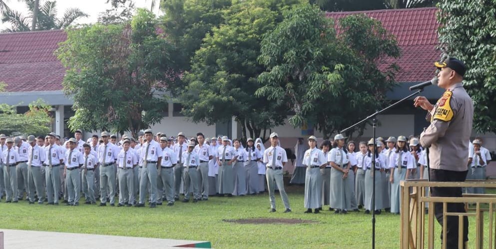 P.SIDIMPUAN (Waspada): Kapolres Padangsidimpuan AKBP Dudung Setyawan berbagi kiat hidup dalam menghadapi perkembangan zaman now bersama siswa-siswi SMA Negeri 3 di Jalan Perintis Kemerdekaan, Kelurahan Padangmatinggi, Senin (22/1/2024).