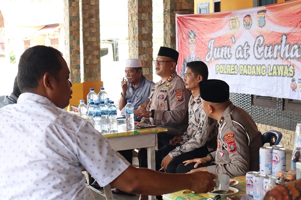 PADANGLAWAS (Waspada); Kapolres Padanglawas (Palas) mengadakan kegiatan Jum’at curhat, bertemu ramah masyarakat di desa Janjimatogu kecamatan Lubuk Barumun, kabupaten Padanglawas.