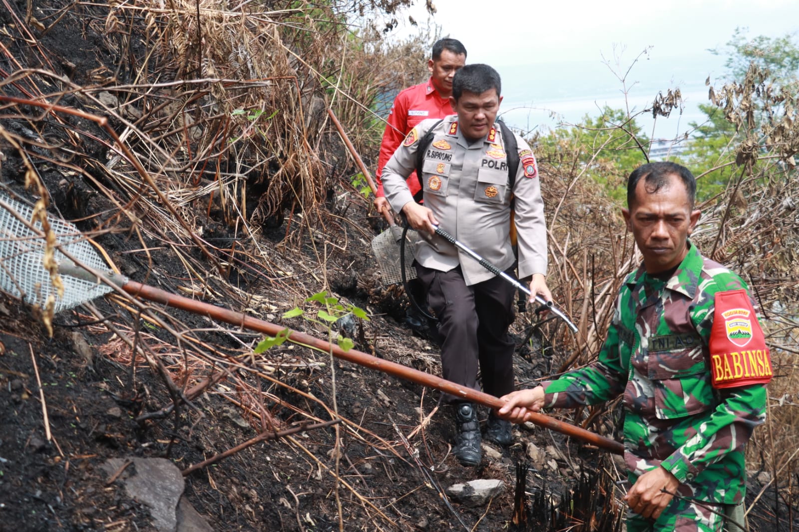 SIMALUNGUN (Waspada): Kapolres Simalungun, AKBP Ronald F.C Sipayung, memimpin patroli gabungan titik-titik bekas terjadinya kebakaran hutan dan lahan (Karhutla) di wilayah Haranggaol, Kab. Simalungun, Rabu (9/8/2023).