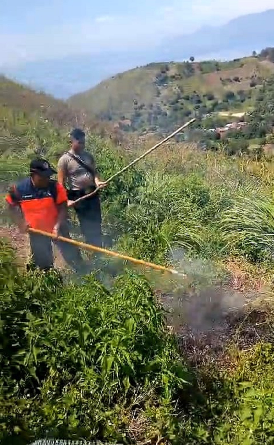 “Jadi ini yang membuat kita kesulitan, ditambah kondisi medan lereng pegunungan dengan angin kencang, sehingga pemadaman dilakukan secara manual dari Simpang Bage, Desa Nagori Sinar Naga Meriah, Kecamatan Pamatang Silima Kuta, Kabupaten Simalungun”, ujar Kapolsek.