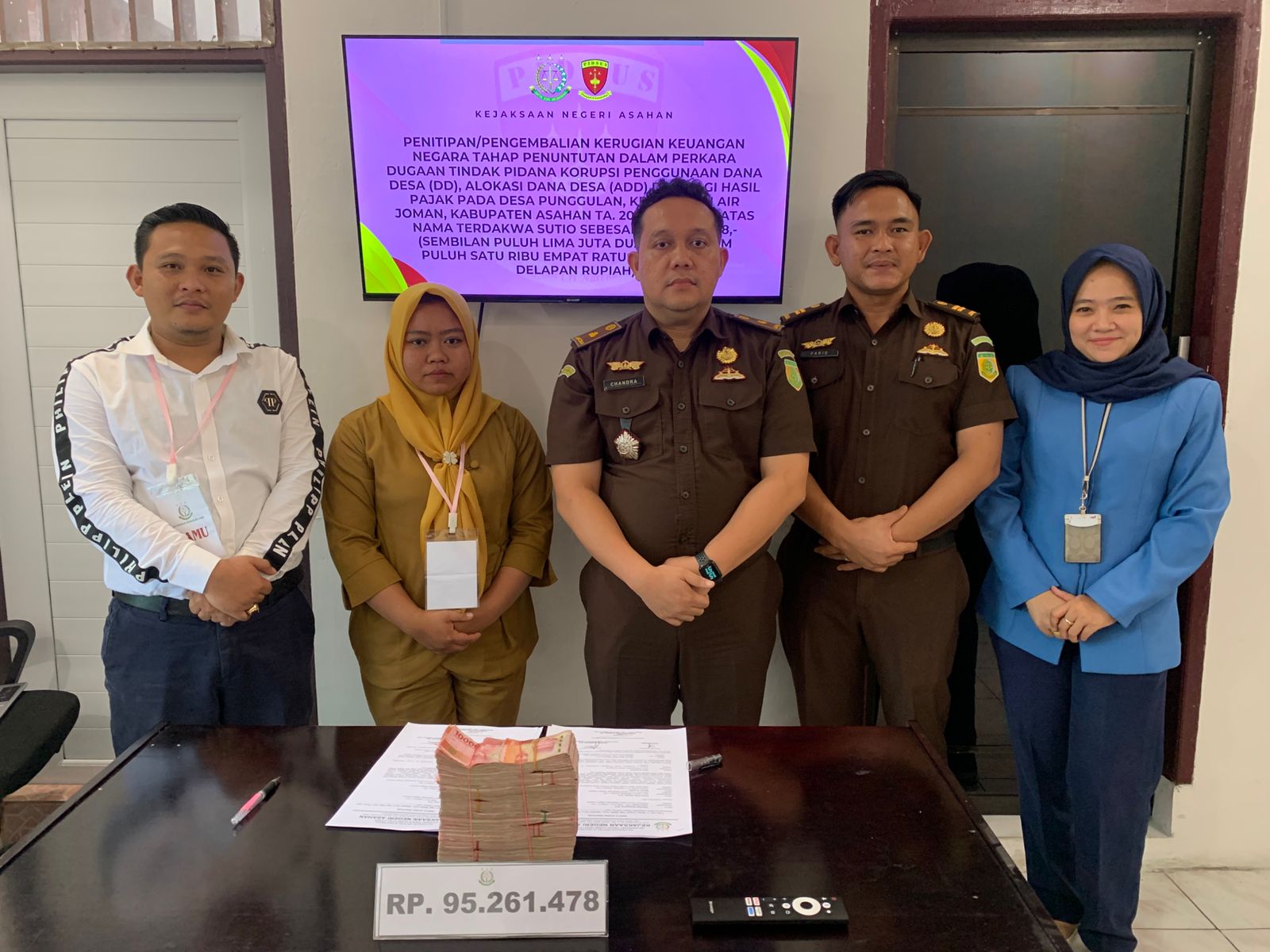KISARAN (Waspada.id): Kejaksaan Negeri (Kejari) Asahan menerima penitipan pengembalian kerugian keuangan negara sebesar Rp95.261.478 terkait dugaan tindak pidana korupsi Dana Desa di Desa Punggulan, Kecamatan Airjoman, Kabupaten Asahan.