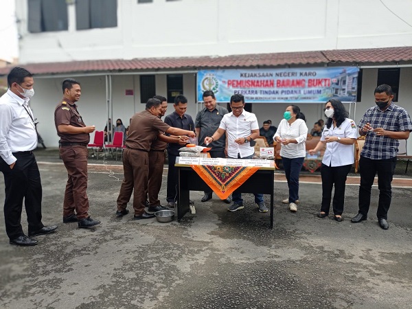 Kepala Kejaksaan Negeri Karo Tri Sutrisno mengatakan, barang bukti yang dimusnahkan dari perkara tindak pidana narkoba, perjudian, dan pidana umum lainnya. Dirinya menjelaskan, untuk barang bukti narkoba sebanyak 283 gram sabu dan 12 kilogram ganja.