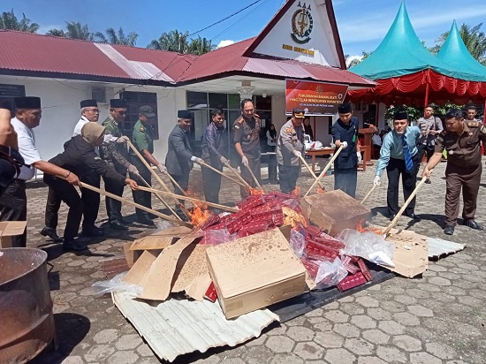 Pantauan Waspada, pemusnahan BB itu turut dihadiri Plt Bupati Palas drg Ahmad Zarnawi Pasaribu CHt MM MSi, Kapolres Palas AKBP Diari Astetika SIK, anggota DPRD Palas, para asisten dan staf ahli.