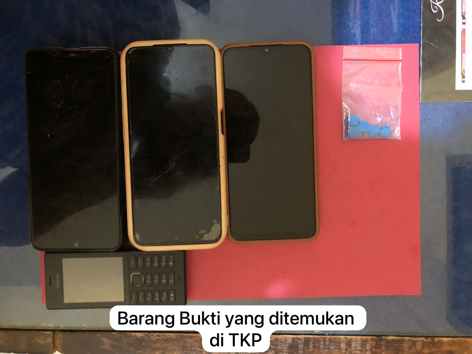 Dari tersangka WD berhasil disita 5 butir pil berwarna biru merk QP, diduga narkotika jenis ekstasi yang dibungkus di dalam plastik klip transparan berukuran sedang, dengan berat bruto 2,09 gram. Juga disita 6 HP yang diduga sebagai alat komunikasi dalam transaksi narkotika.