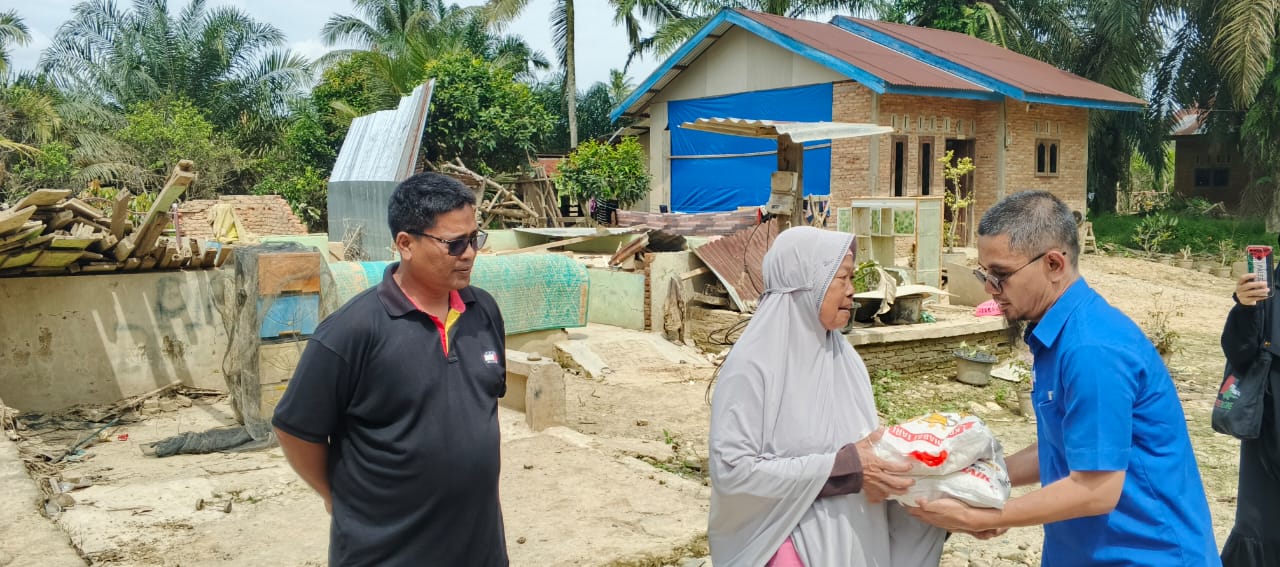 Bantuan bahan kebutuhan pokok berjumlah ratusan karung beras ini secara simbolis disalurkan secara door to door oleh dosen UMA Dr. Dedi Sahputra, S.Sos, MA kepada sembilan orang warga dari dua dusun yang rumahnya hanyut diterjang banjir.