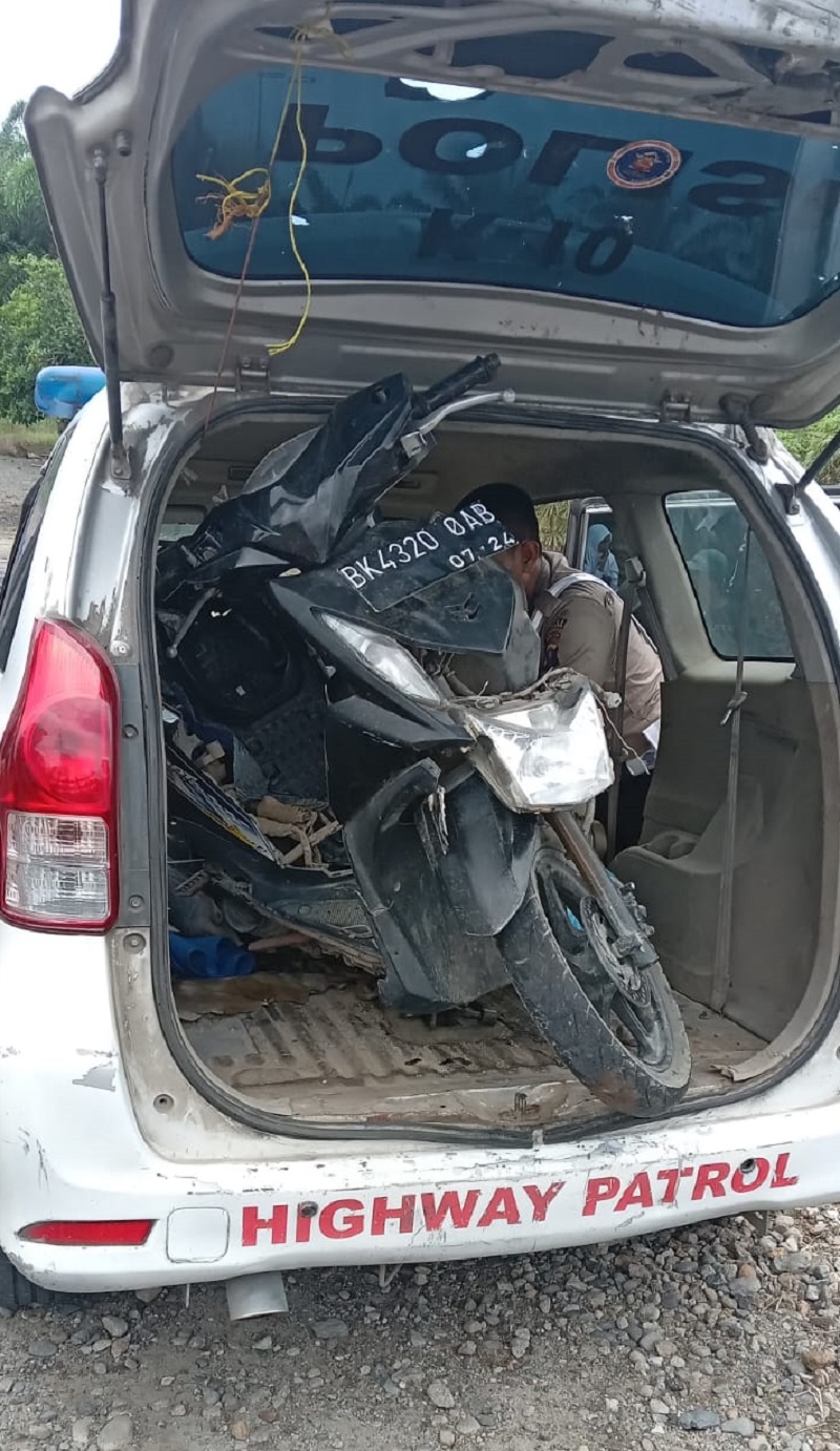 Sosok tubuh yang diperkirakan berjenis kelamin wanita ini, diduga mengendarai sepeda motor matic jenis Honda Vario BK 4320 OAB.