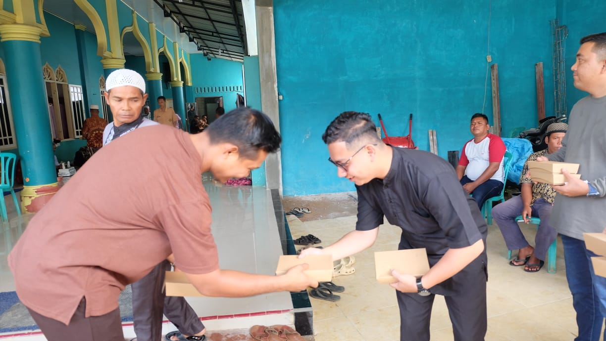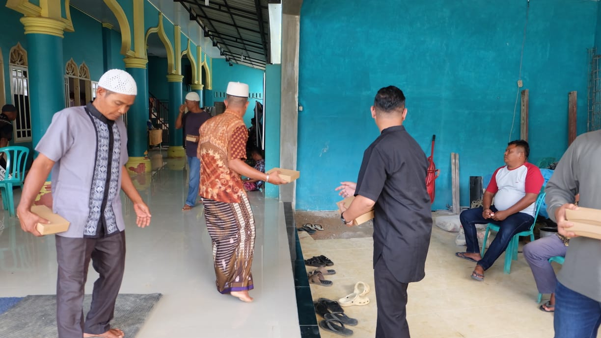 Usai menunaikan Shalat Jumat, Ansyar melaksanakan kegiatan Jumat Berkah dengan membagikan nasi bungkus kepada warga terdampak di pelataran Masjid Nurul Huda, Jalan Murai, Jumat (12/12/2025).