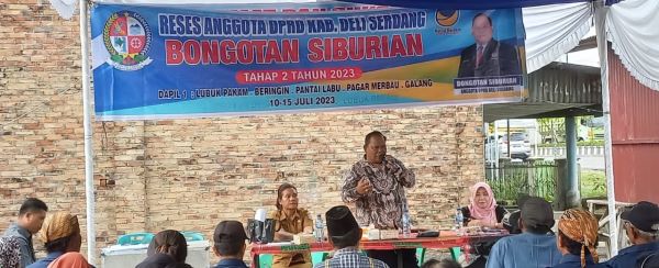 Bongotan Siburian, dalam sambutannya mengatakan reses itu dilakukan guna menjumpai dan mendengarkan secara langsung aspirasi masyarakat di daerah pemilihannya.