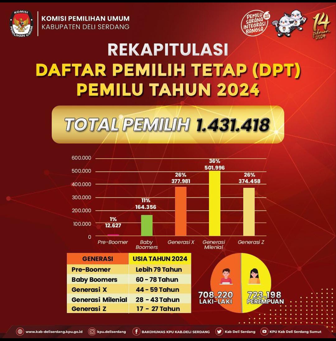 “Hari ini adalah eranya anak muda mengingat jumlah pemilih terbesar di Deliserdang adalah anak muda yang tergabung dalam generasi milenial dan generasi Z dengan jumlah 876.454 Pemilih atau 62 % dari jumlah DPT Deliserdang,” tambah Julyadi.