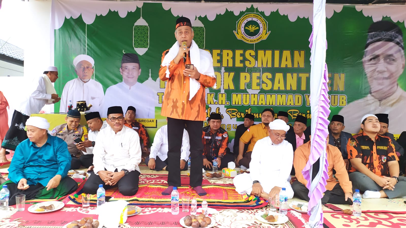 TAPSEL (Waspada): Ketua MPW Pemuda Pancasila (PP) Provinsi Sumatera Utara H.Kodrat Shah meresmikan Pondok Pesantren (Ponpes) Tahfiz K. H. Muhammad Ya’cub di Sisoma Simatorkis, Kecamatan Angkola Barat, Kabupaten Tapanuli Selatan (Tapsel), Minggu (23/7).