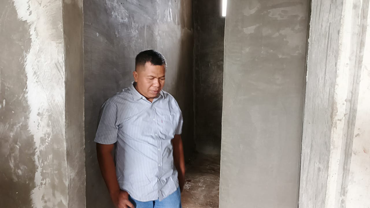 Di lokasi gedung PMI mereka mendapati finishing pembangunannya tidak rapi di dinding lantai dua di setiap sisi bangunan.