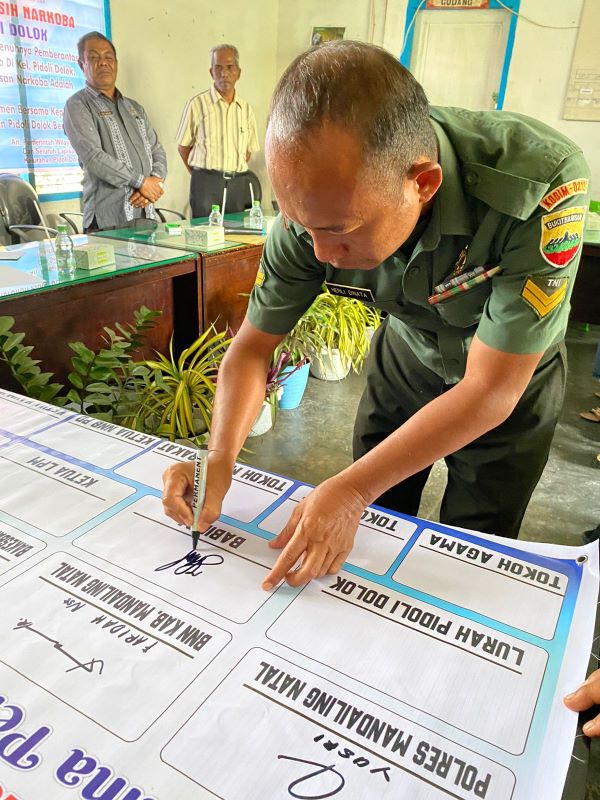 Lurah Pidolidolok Ainannur, SAg menjelaskan, kegiatan ini dihadiri dan ditandatangani komitmen sekira 50 warga di Kantor Kel. Pidolidolok, dirangkai pelantikan pengurus Naposo Nauli Bulung (pemuda dan pemudi, red) Pidolidolok.