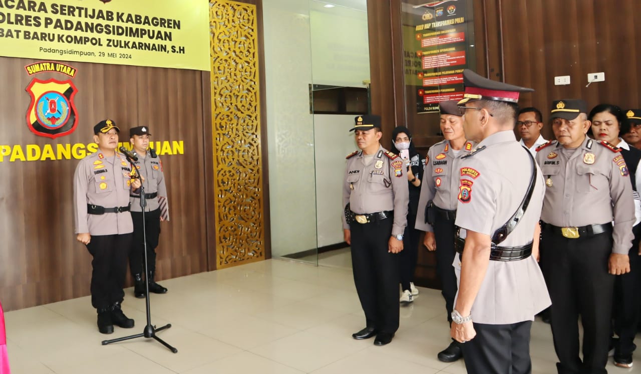 Upacara serah terima dilangsungkan di aula Mapolres Padangsidimpuan, Rabu (29/5/2024), dihadiri para pejabat utama (PJU), perwira, bhintara dan pengurus Bhayangkari.