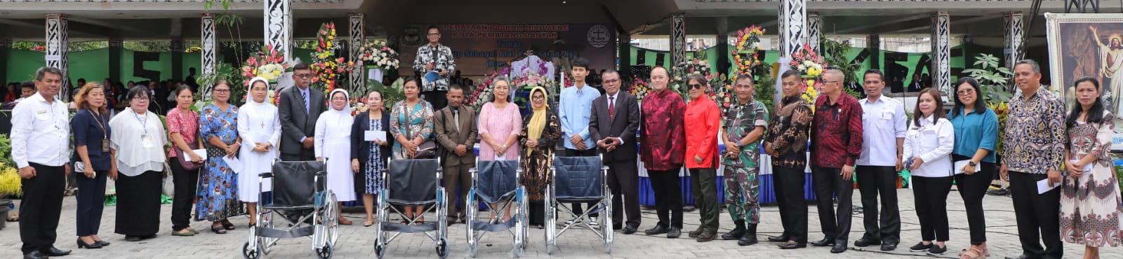 Dalam perayaan Paskah Oikumene itu, Wali Kota bersama panitia memberikan tali asih kepada 11 perwakilan panti asuhan dan penyerahan kursi roda untuk sejumlah yayasan rehabilitasi.