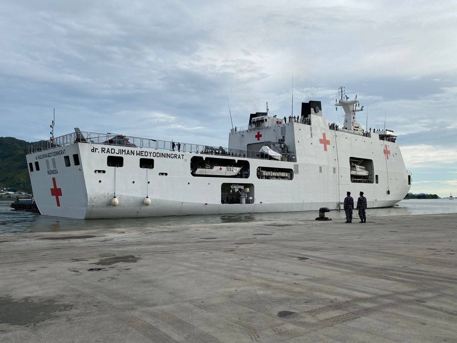 Kedatangan kapal dipimpin oleh Pgs. Komandan KRI, Letkol Laut (P) Hendra, bersama 163 personel yang tergabung dalam Satuan Tugas Dukungan Angkutan Laut (Duk Angla) Bantuan Kemanusiaan BNPB.