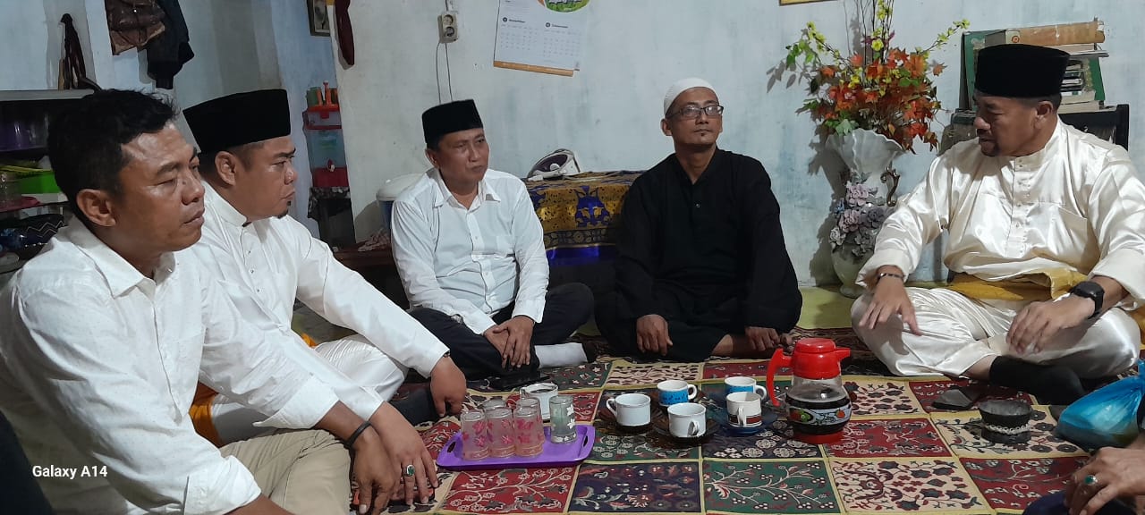TANJUNGTIRAM (Waspada):Bupati dan Wakil Bupati Batubara terpilih Baharuddin Siagian dan Syafrizal bersama pengurus Gemkara mengunjungi keluarga almarhum Kamaruddin yang dikenal Andak Masto merupakan pejuang pemekaran Kabupaten Batubara di Tanjungtiram, Senin (9/12).