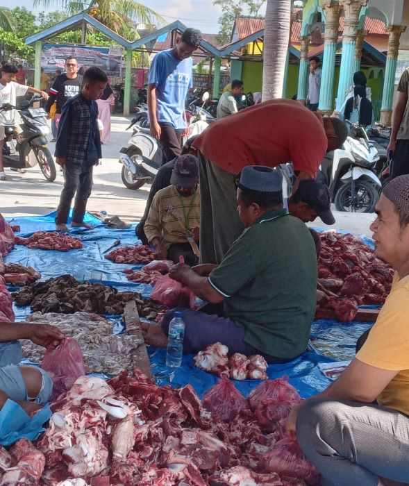Prosesi penyembelihan berlangsung di berbagai masjid maupun mushalla di kelurahan yang terdiri dari delapan lingkungan tersebut.