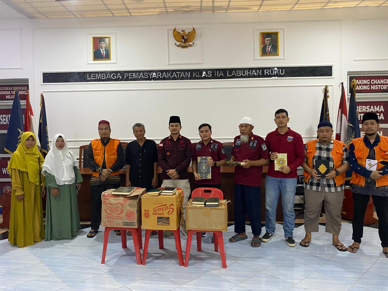 Bantuan Alquran ini diterima oleh Kepala Seki Bimbingan Napi / Anak Didik (Kasi Binadik) Benny Wijaya Tarigan di Aula Lapas Labuhan Ruku, Jumat (26/4).