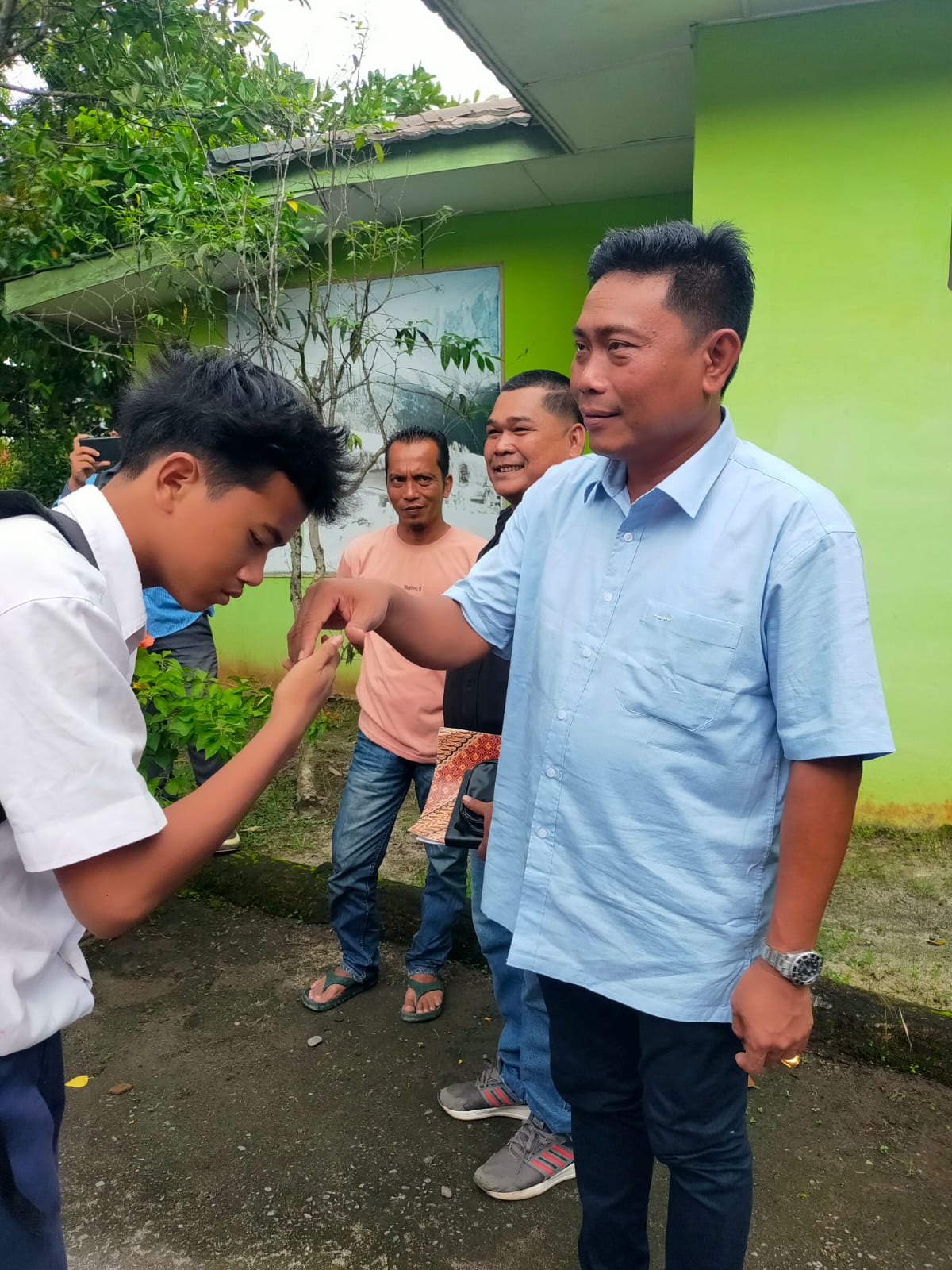 DELISERDANG (Waspada): Anggota DPRD Deliserdang dari Fraksi Gerindra Muhammad Dahnil Ginting,SE meninjau langsung kondisi ratusan siswa SMP Negeri 2 Desa Petumbukan Kec.Galang yang terganggu proses belajar dan mengajar karena terdampak sengketa lahan antara Pemkab Deliserdang dan pihak Yayasan Al Washliyah.