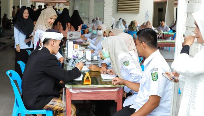 Usai upacara, terlihat antusiasme santri dari berbagai pondok pesantren yang sabar menunggu giliran untuk pengecekan kesehatan.