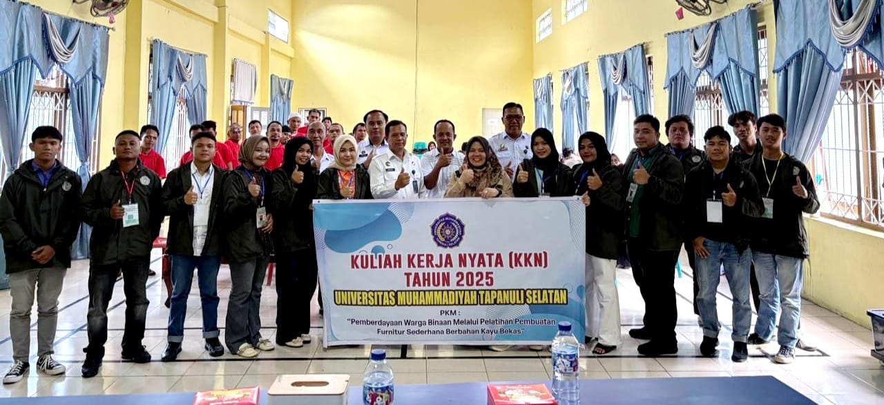 P.SIDIMPUAN (Waspada.id) : Mahasiswa Universitas Universitas Muhammadiyah Tapanuli Selatan (UM Tapsel) yang sedang menjalankan Kuliah Kerja Nyata (KKN) latih warga binaan Lembaga Pemasyarakatan (Lapas) Kelas II B Padangsidimpuan olah kayu bekas jadi Furniture.