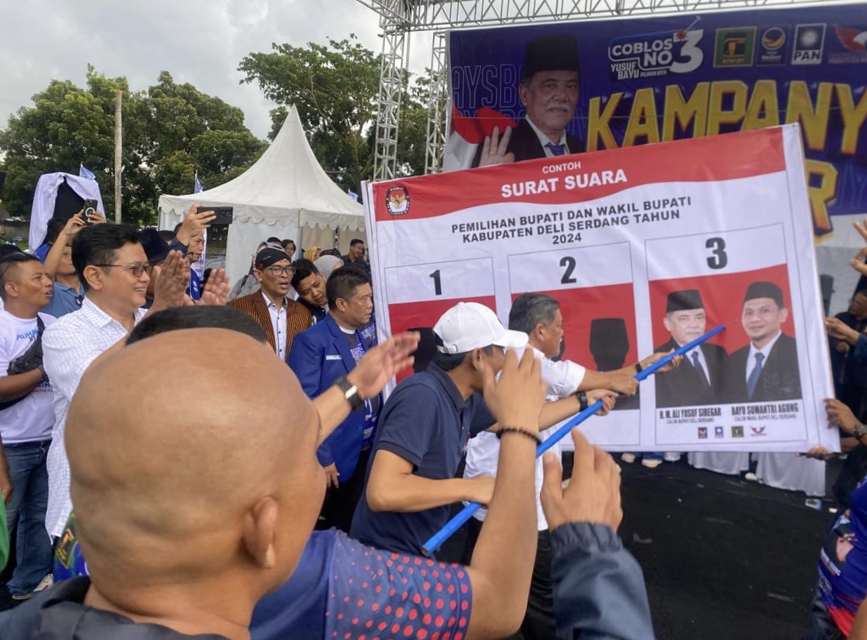 Juru Kampanye (Jurkam) Yusuf-Bayu dari pusat Wakil Ketua Umum (Waketum) Partai Amanat Nasional (PAN) yang juga Wakil Menteri Transmigrasi Viva Yoga Mauladi mengajak, puluhan ribuan massa yang hadir untuk memilih Calon Bupati dan Wakil Bupati Deliserdang yang berpengalaman yaitu HM Ali Yusuf Siregar bersama Bayu Sumantri Agung.