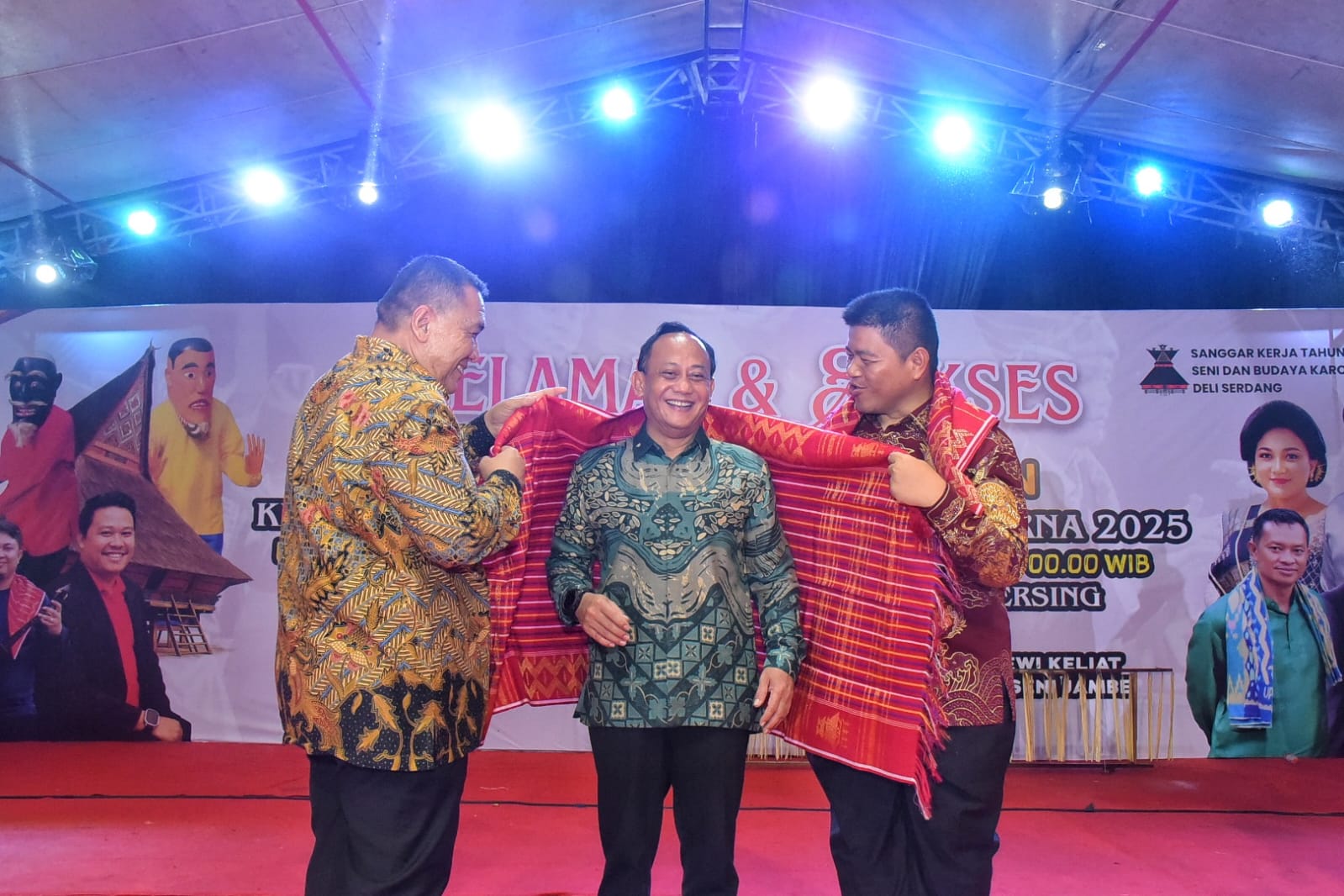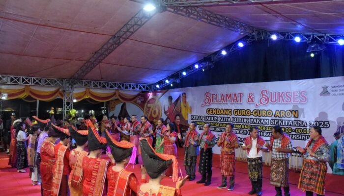 “Karena itu ambil peran, jadilah pewaris dan pelestarian budaya. Belajarlah tentang nilai-nilai kearifan lokal yang terkandung dalam setiap tradisi. Karena di sanalah kita belajar tentang hormat kepada orang tua, kebersamaan, dan kepedulian terhadap sesama,” tegas Dedi Maswardy di acara Kerja Tahunan Kota Lubukpakam sekitarnya berupa Gendang Guro-Guro Aron bertajuk, Sikuning Kuningen Gelah Radu Megersing tahun 2025 di Lapangan Tengku Raja Muda, Kecamatan Lubukpakam, Sabtu (8/11/25) malam.