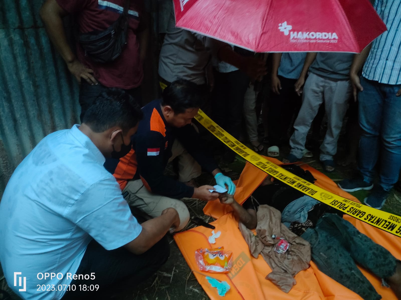 Identitas mayat diketahui bernama Sumitro, 43, warga Lingkungan III Mesra Kel.Pardamean Kab.Langkat alamat lain Jalan Pancing Kota Medan.