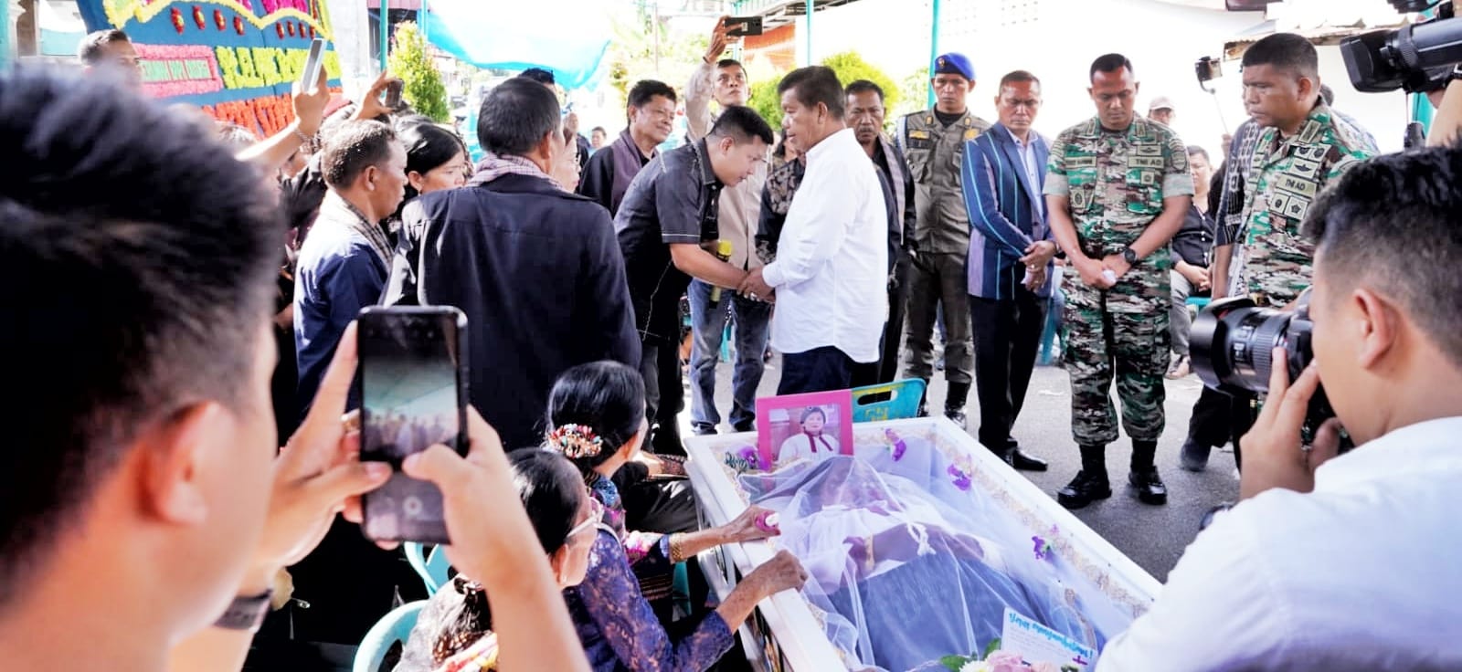 SIMALUNGUN (Waspada): Bupati Simalungun Radiapoh Hasiholan Sinaga bersama Danrem 022/PT Kolonel Inf Agustatius Sitepu, Dandim 0207/Sml Letkol Inf Hadrianus Yossy dan Sekda Esron Sinaga dan sejumlah pimpinan perangkat daerah di lingkungan Pemkab Simalungun, melayat ke rumah duka korban kecelakaan lalulintas beruntun, Jum’at (26/1/2024).