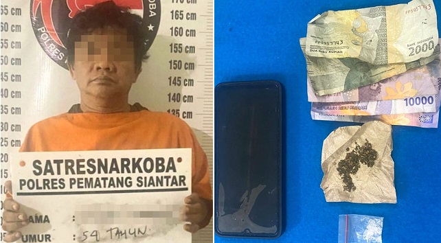 PEMATANGSIANTAR (Waspada): Miliki narkotika jenis sabu-sabu dan ganja, Polres Pematangsiantar melalui Sat Resnarkoba meringkus terduga pelaku seorang pria residivis narkotika, FS, 54, warga Jl. Rajawali, Kel. Sipinggolpinggol, Kec. Sianțar Barat.