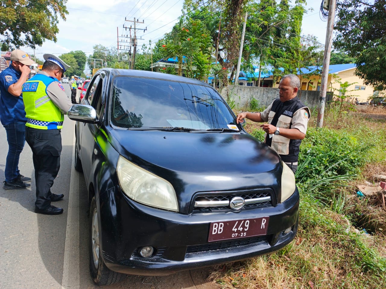 PANYABUNGAN (Waspada.id): Mobil dinas Camat Kotanopan, Kabupaten Mandailing Natal (Madina), terjaring razia gabungan kepatuhan pajak kendaraan bermotor di depan Kantor Samsat Panyabungan, Jumat (7/11/2025). Kendaraan dengan nomor polisi BB 449 R, merek Terios warna hitam, diketahui mati STNK dan pajak sejak Juli 2025.