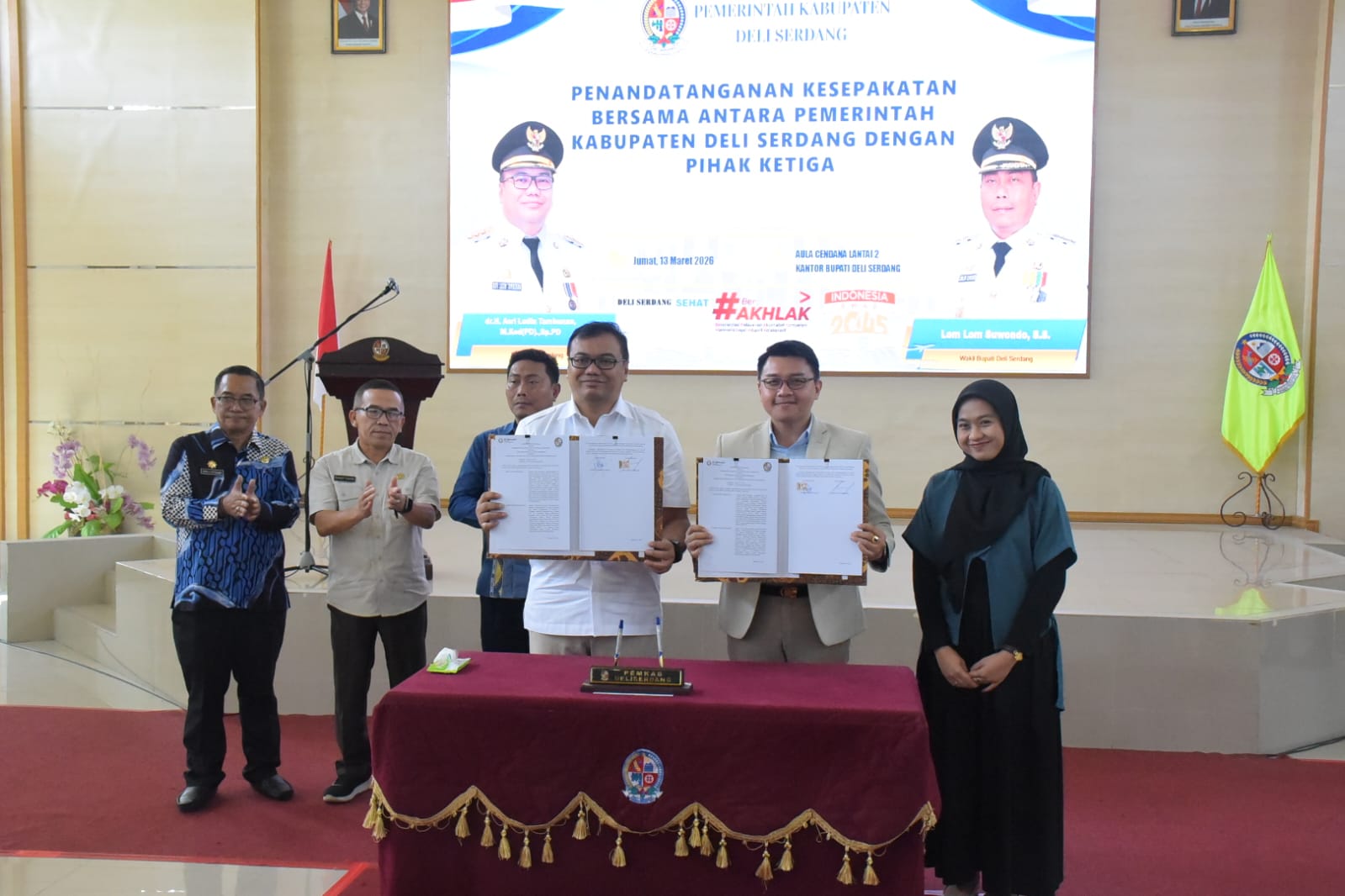 Penandatanganan MoU tersebut dilakukan Bupati Deliserdang, dr H Asri Ludin Tambunan di Aula Cendana, Lantai II, Kantor Bupati di Lubukpakam, Jumat (13/3/26).