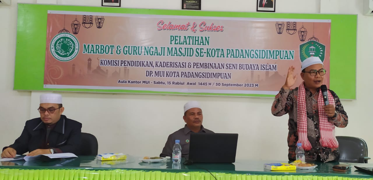 Ketua Panitia Pelatihan, Dr.Hamdan Hasibuan MPd mengatakan dalam memberi penguatan kepada marbot dan guru ngaji agar, MUI P.Sidimpuuan menghadirkan dosen UIN Syahada Padangsidimpuan Dr.Zainal Efendi Hasibuan MA sebagai nara sumber dengan moderator Romi Iskandar Rambe SH.
