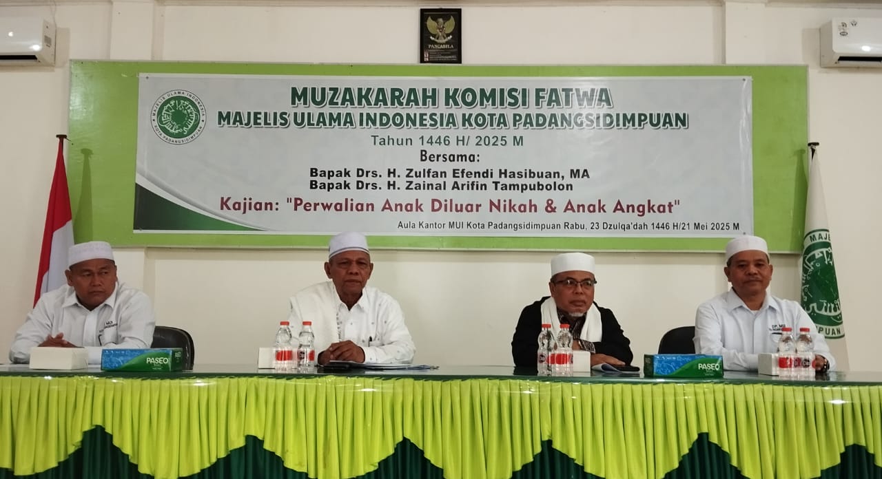 P.SIDIMPUAN (Waspada) : Majelis Ulama Indonesia (MUI) Kota Padangsidimpuan gelar muzakaroh untuk membahas problematika anak di luar nikah serta status dan hak anak angkat menurut hukum Islam di Aula Kantor MUI, Jl. HT Rizal Nurdin, Palampat, Padangsidimpuan, Rabu (21/5/2025).