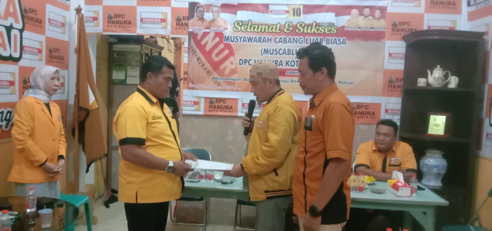BINJAI (Waspada): DPC Partai Hati Nurani Rakyat (Hanura) Kota Binjai menggelar musyawarah cabang luar biasa (Muscablub) di sekretariat Jalan Soekarno-Hatta, Komplek Ruko Graha, Senin (3/4) malam.