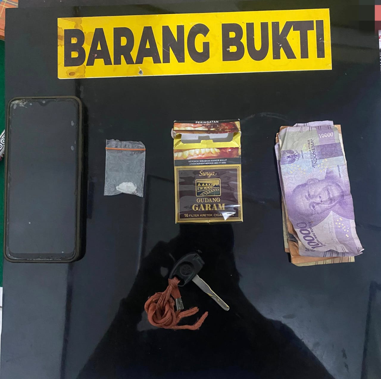 Petugas mengamankan WS yang mengendarai sepeda motor Mio GT tanpa plat nomor. Saat penggeledahan, ditemukan satu bungkus plastik klip merah berisi sabu seberat 1,07 gram brutto yang disembunyikan dalam kotak rokok Surya.