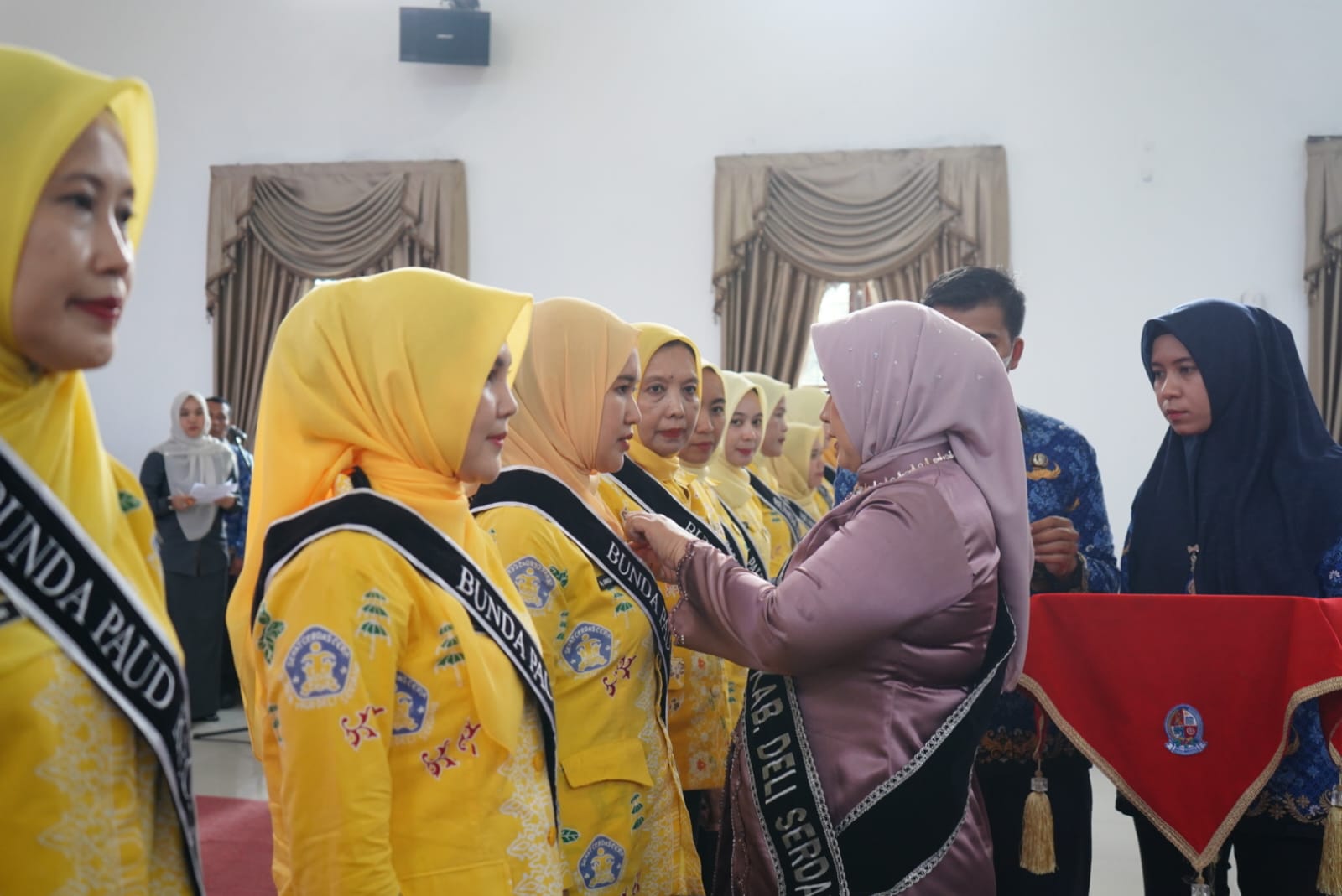 Setelah dikukuhkan, Ny. Jelita yang juga Bunda Pendidikan Anak Usia Dini (PAUD) Deliserdang tersebut lantas mengukuhkan Bunda PAUD se-Kecamatan dan Pengurus Dewan Kerajinan Nasional Daerah (Dekranasda) Deliserdang masa bakti 2025–2030.