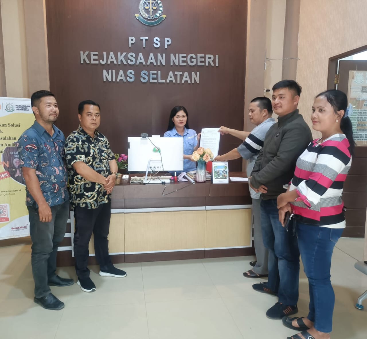Laporan pengaduan disampaikan di Kejari Nisel oleh Ketua bersama anggota BPD, tokoh adat, dan tokoh masyarakat serta LPM Desa Hilisangowola, Kecamatan Lolomatua, Kabupaten Nias Selatan, Selasa (29/10).