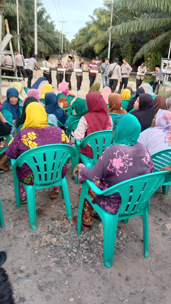 Massa memportal areal perusahaan. Massa tetap melakukan aksi di lahan perkebunan bahkan mencegah panen TBS dilakukan dengan memportal areal perusahaan.