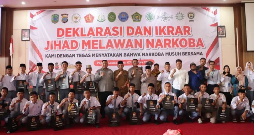 GUNUNGTUA (Waspada.id): Pemerintah Kabupaten Padanglawas Utara (Paluta) bersama Polres Tapanuli Selatan menggelar Deklarasi Jihad Narkoba di Aula Sapadia Hotel Gunungtua, Selasa (07/10/2025), sebagai langkah konkret memerangi penyalahgunaan narkoba di wilayah tersebut.