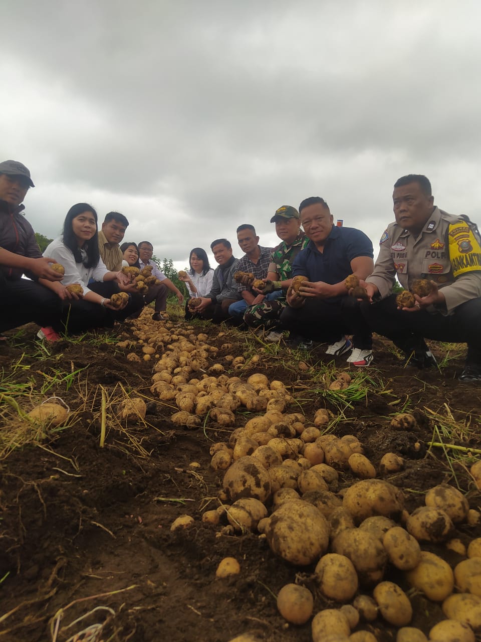 TANAH KARO (Waspada.id): Pemerintah Desa Sempajaya, Kecamatan Berastagi melalui Badan usaha milik desa (Bumdes) Sempah Arih Sempajaya melaksanakan panen perdana tanaman komoditi kentang program Ketahanan Pangan (Ketapang), Rabu (12/11).