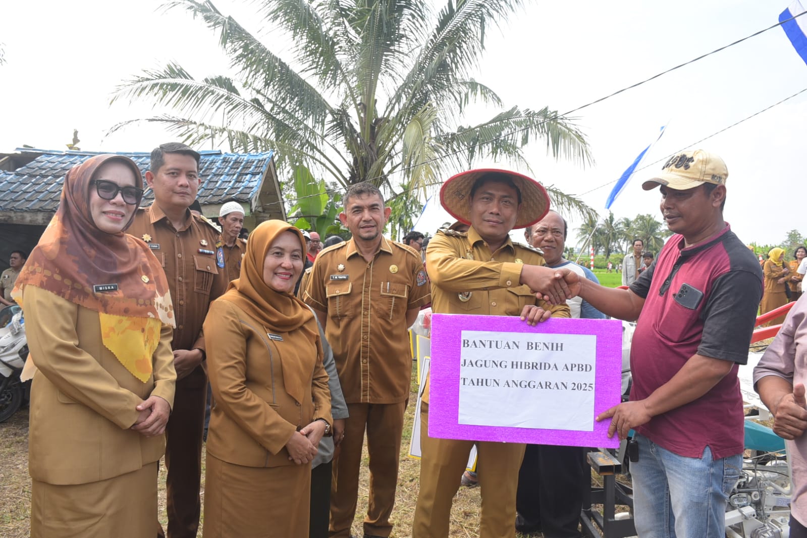 Di kesempatan itu, Wabup turut menyerahkan bantuan, masing-masing satu unit traktor roda dua dan rice transplanter kepada kelompok tani (Poktan) Begawan, Desa Medan Krio, traktor roda dua dan rice transplanter kepada Poktan Serayu, Desa Medan Krio, enam unit handsprayer kepada Poktan Arih Ersada, Desa Serba Jadi, benih jagung hibrida kepada Poktan Glorya, benih sayur-sayuran dan pupuk kompos kepada Gapoktan Makmur Sejahtera.