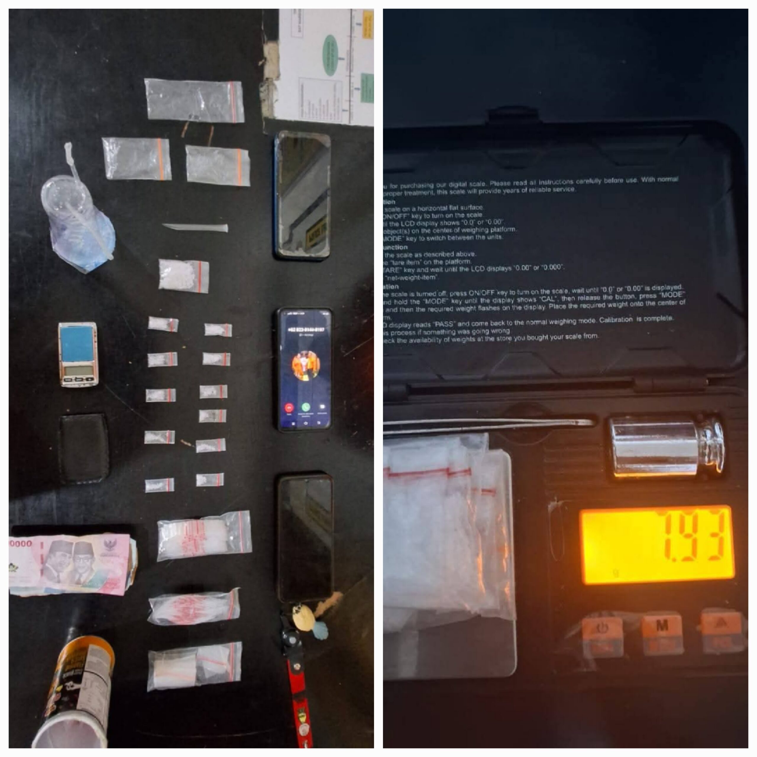 Selain sabu, petugas juga menyita barang bukti lain seperti timbangan elektrik, alat hisap sabu, uang tunai Rp185.000, dan tiga unit handphone.