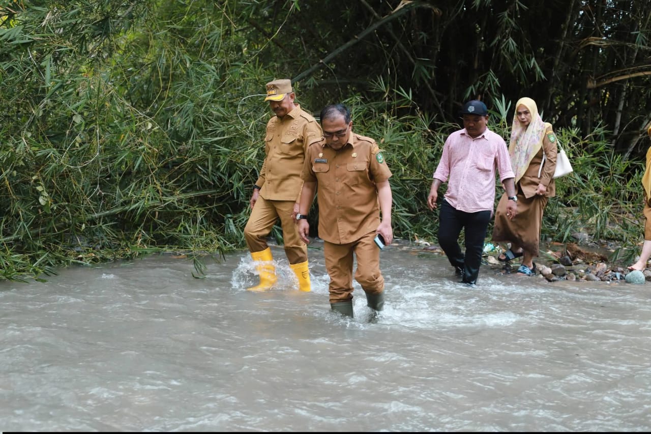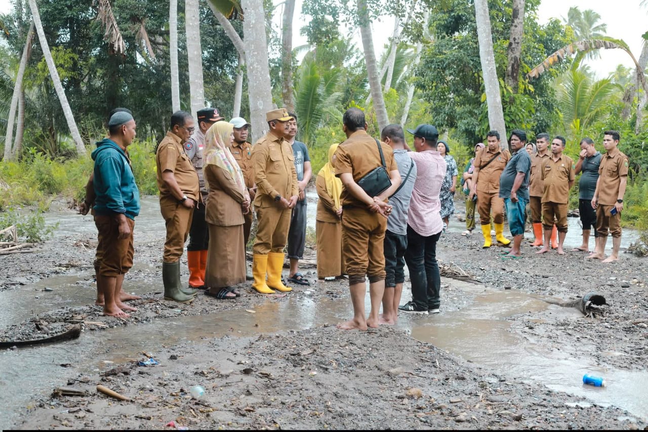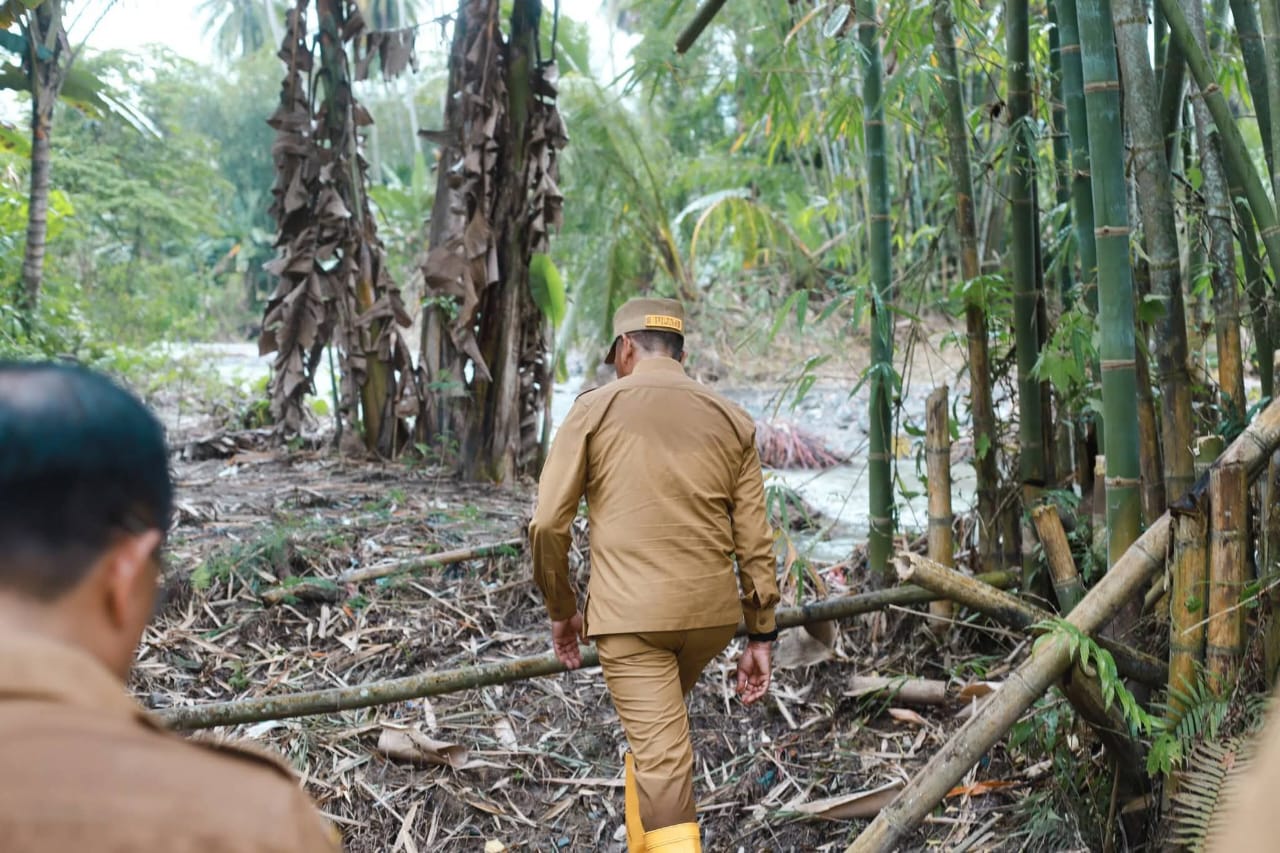 Bupati H. Saipullah Nasution berkunjung ke Kelurahan Longat untuk melihat langsung dampak banjir yang terjadi beberapa pekan lalu.
