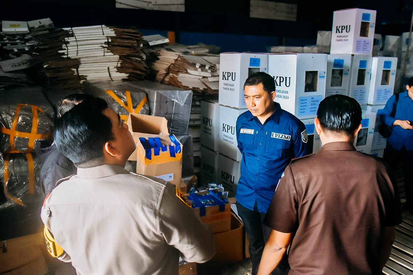Kunjungan Pj. Bupati Heri Wahyudi didampingi Kapolres AKBP, Taufik Hidayat Thayeb, Kajari, Dicky Oktavia dan Ketua KPU, Erwin ini bertujuan untuk memastikan kotak suara dan surat suara dalam kondisi baik, aman serta siap digunakan pada Pilkada serentak 2024 tanggal 27 November mendatang.